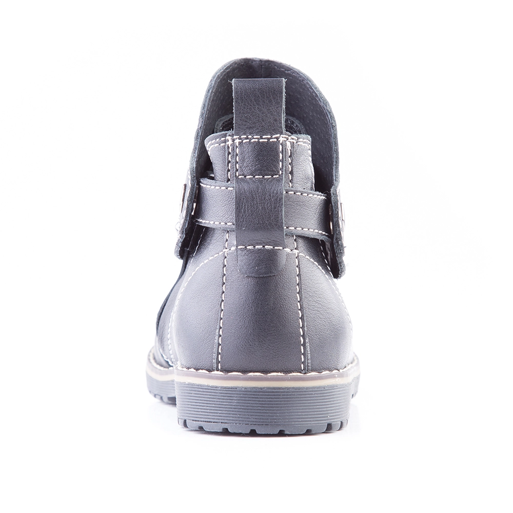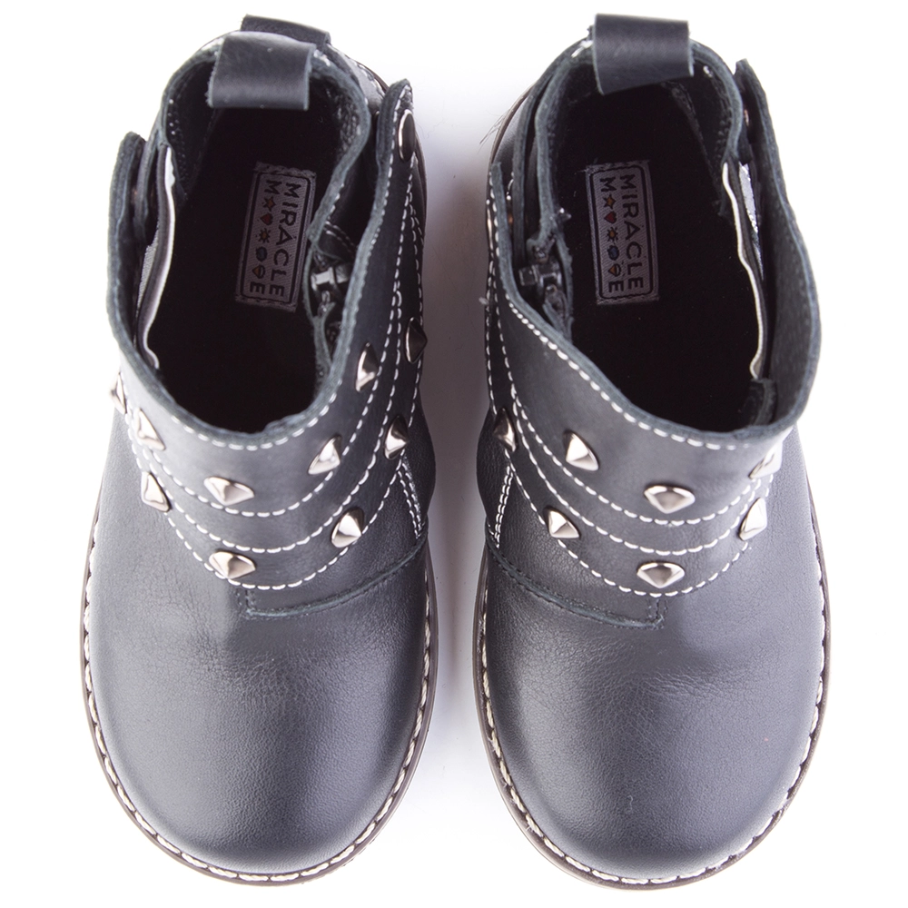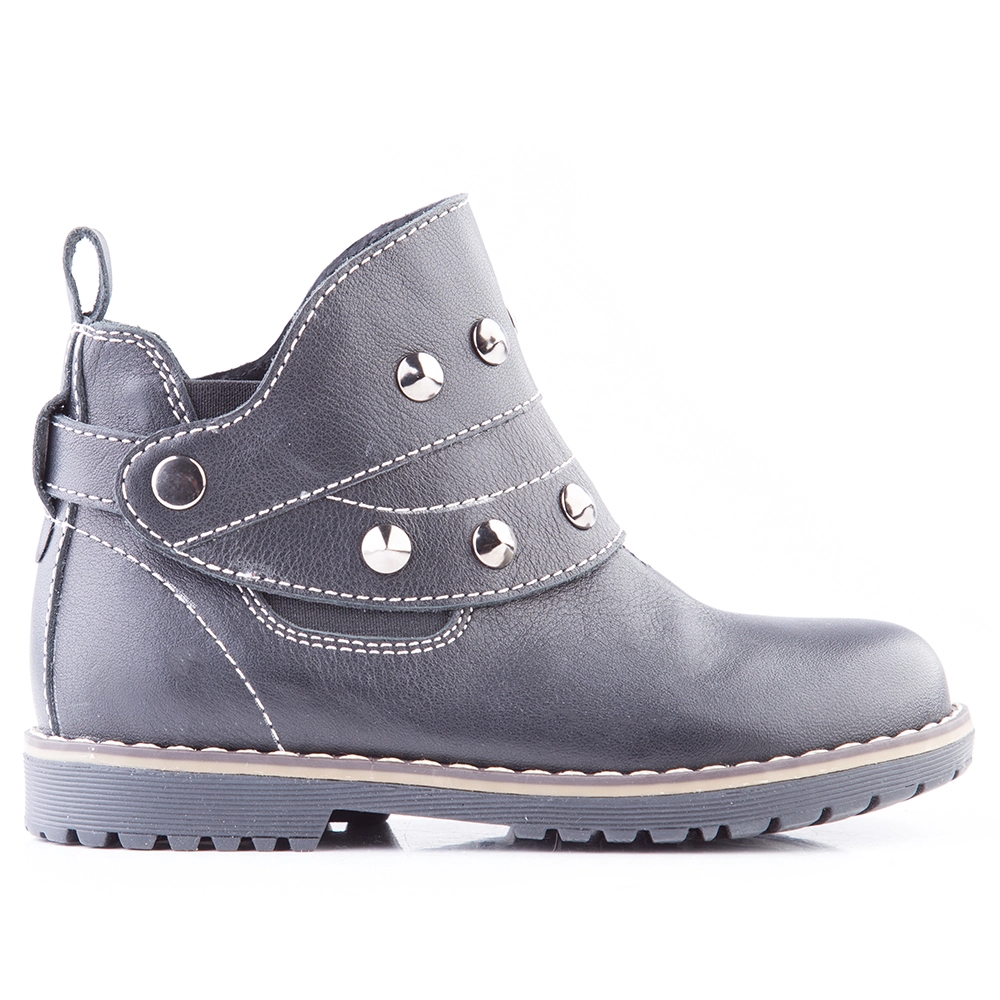 Ботинки выполнены из натуральной кожи, декорированы заклёпками и хорошо сидят на детской ножке. Данная модель является особенной, поскольку понравиться современной молодёжи благодаря ультрасовременности и практичности. Наличие супинатора обеспечивает правильное формирование ноги, не образовывая плоскостопия.