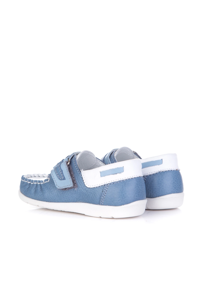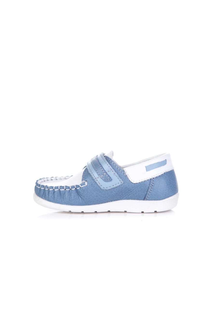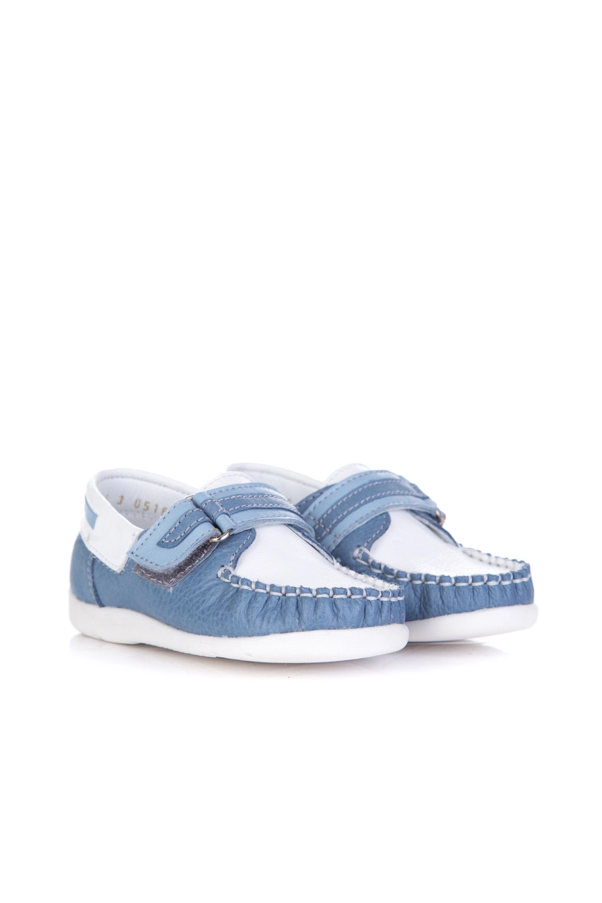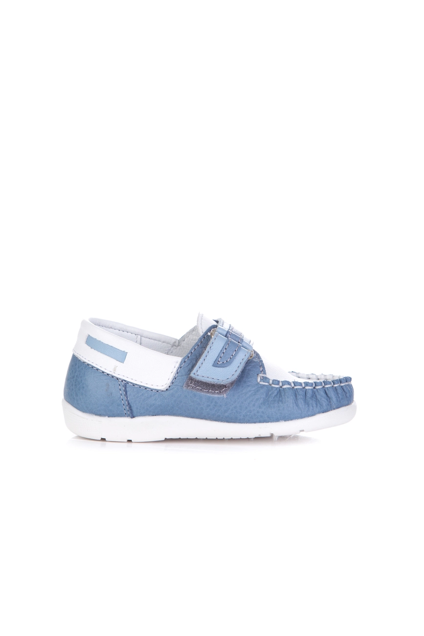 Это удобная и практичная модель, которая обладает красивым бело-голубым цветом в сочетании с прошитимы по краям и декоративными вставками. Мягкий задник и надёжно зафиксированный передник благодаря большому язычку, позволяет избежать формирования плоскостопия у ребенка и обеспечивая правильное развитие ноги, а также комфорт при ношении.