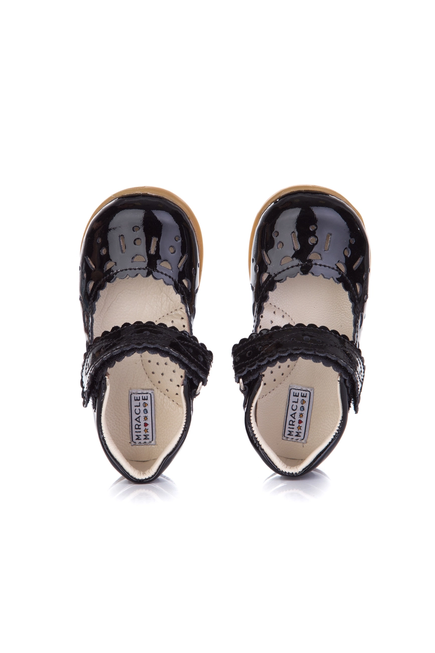 Благодаря специальной перфорации вы сможете не переживать, что в жаркие дни ребёнку будет не комфортно носить обувь и запотевать нога. Красивые кружевные лакированные туфли для девочки, выполненные из натурального материала. В основе применяется натуральная лаковая кожа, обеспечивающая комфортное ношение и удобство. Подошва с эластичного материала, который является надёжным фиксатором против скольжений, а также не позволяет обуви протереться.