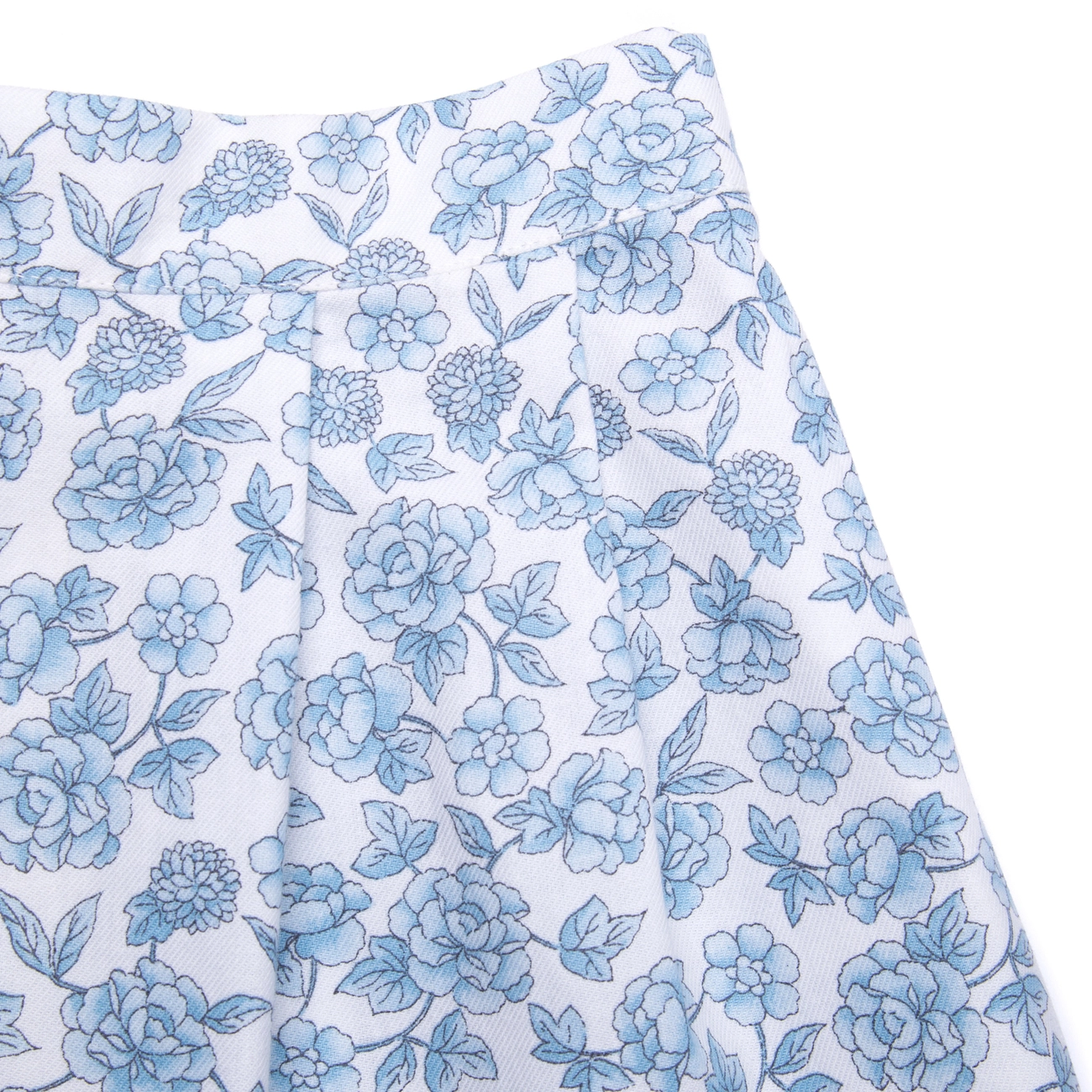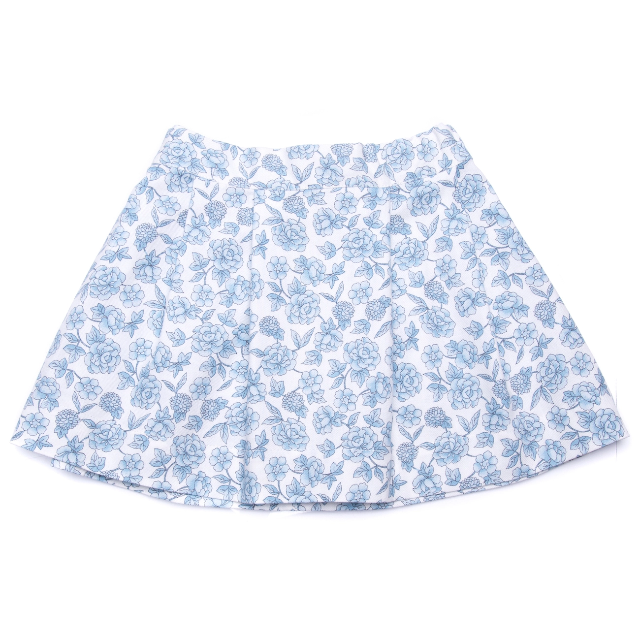 Воздушная юбочка с красивыми складками – что может еще лучше подходить маленькой принцессе. Симпатичная белая юбка украшена изящным узором с розами – приглушенный светло-голубой рисунок не будет конфликтовать с другой одеждой, поэтому такую юбку можно надеть подо что угодно. Удобный крой юбки обеспечивает комфорт во время носки.